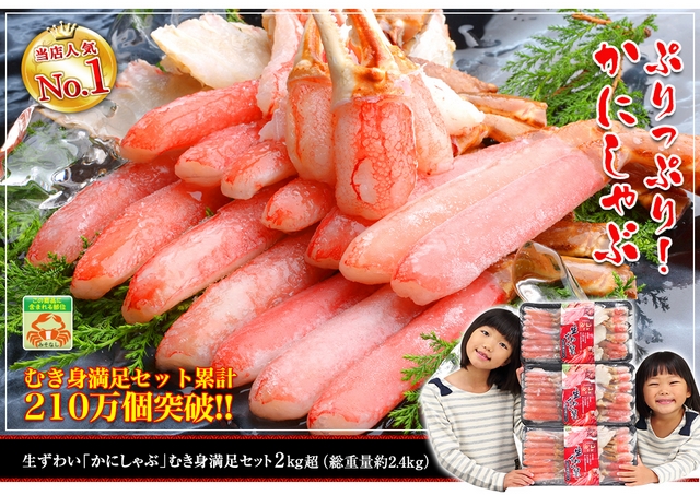 一押しは上記画像の生ずわい「かにしゃぶ」むき身満足セット2kg超(総重量約2.4kg)!