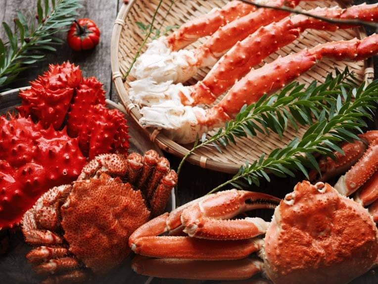 毛ガニ・ズワイ・タラバに加え、花咲ガニなど希少なカニも扱い、贈り物にも選びやすいラインナップが揃います。